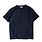 Classic round-neck T-shirt from Sunray Sportswear. Made in Japan with recycled cotton and knitted on an antique loop wheel machine. This slow process involves knitting around a tube to create a seamless finish on the torso and each garment takes more than 1.5 hours to make.