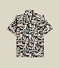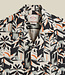 The Viva by Portuguese Flannel is a short-sleeved shirt featuring a vibrant print with an Art Deco motif. This shirt has a relaxed summer silhouette. The camp collar creates a nonchalant, casual look, while the patterned fabric adds a distinctive touch that stands out without sacrificing versatility for warm weather.