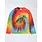 Een unisex T-shirt met lange mouwen en tie-dye-print, met een dolfijn op de voorkant. De stof waarvan dit T-shirt is gemaakt, is GOTS-gecertificeerd.