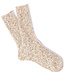 Deze sokken hebben een unieke, handgesponnen textuur, gemaakt door verschillende soorten en kleuren garen met elkaar te verweven, wat zorgt voor een handgemaakte warmte en karakter. Met een opvallend maar verfijnd ontwerp passen ze naadloos bij diverse stijlen en voegen ze een vleugje individualiteit toe. De toevoeging van bouclégaren zorgt voor een aangenaam droge textuur, waardoor deze sokken een veelzijdige keuze zijn voor comfort het hele jaar door.