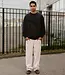 Een zwarte unisex trui met een ijsvogel op de voorkant en een ijsvogel op de achterkant. De stof waarvan deze trui is gemaakt, is GOTS-gecertificeerd.