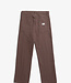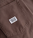 Relaxte broek met vijf zakken, gemaakt van een geverfde, zware 3x1 twillstof. Deze broek heeft een hogere taille en een wijdere pijp die iets smaller wordt van de knie tot de zoom, waardoor hij een iets lossere pasvorm heeft. Voorzien van stevige stiksels, een ritssluiting en een merklabel aan de achterkant. Afgewerkt met metalen knopen en klinknagels met merklogo. Gemaakt in Duitsland.