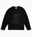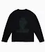Een zwarte unisex-t-shirt met lange mouwen en een slang op de voorkant en een slang op de achterkant. De stof waarvan dit T-shirt is gemaakt, is GOTS-gecertificeerd.